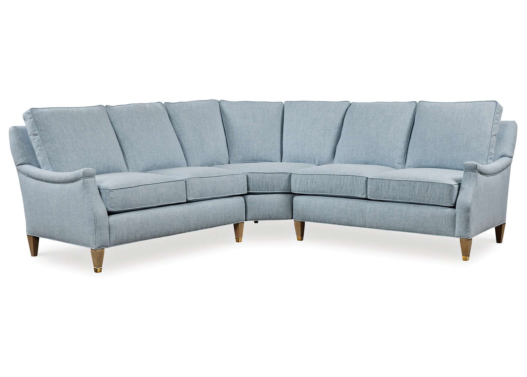 *Photographed in Eisley Spa fabric with Cyrus finish. From left to right configuration: 2YC21, 2YC13, 2YC22 Shown with: Standard Depth, Cap Arm/Straight Cushion, Square Box Border/Straight Cushion and Tapered Legs with Brass Ferrule.